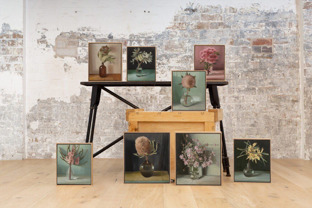 Ash Leslie’s open-ended process embraces chance and discovery. Layers of oil paint coalesce into forms that hover on the edge of recognition, drifting through diaphanous washes of grey, moss, and blush.