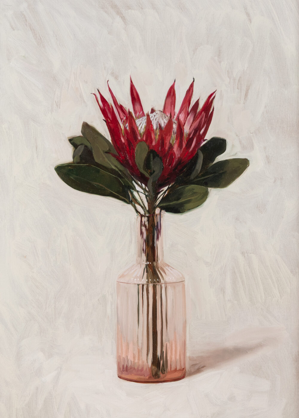 In ‘From the North’, Sydney-based painter Holly Dormor returns to the play of light that drifts across her studio walls. Her still lifes — bunches of crepe myrtle, maple and paper daisies in glass — are painted in rhythm with that shifting brightness, where a passing flare might draw a leaf forward or let it fall back into shadow.