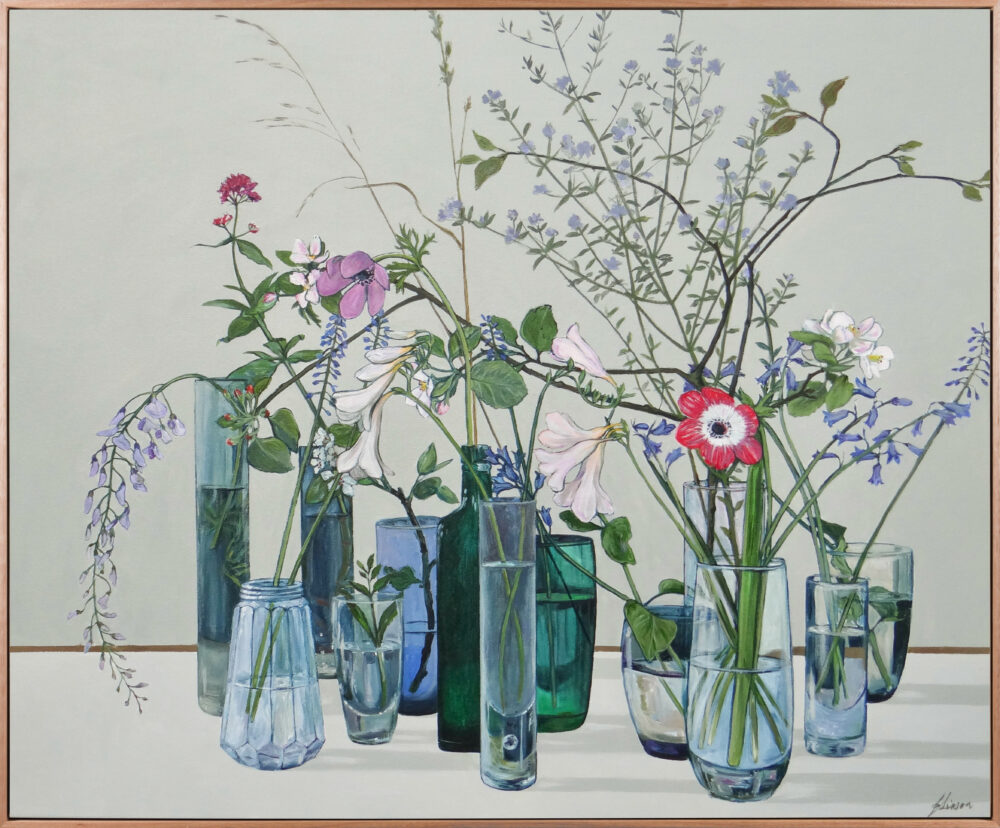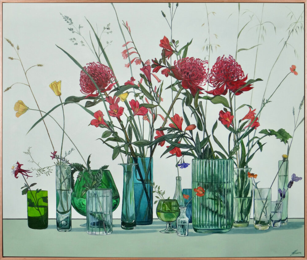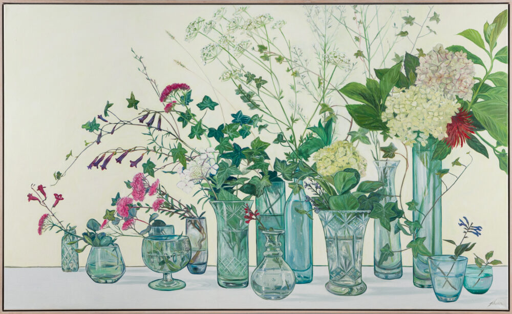 Of her works filled with beautifully rendered flora in glass vessels, Sisson says; “The natural world thematically connects most aspects of my art practice. I have an interest in the ecology of the landscape and I am attempting to capture, within my artwork, how natural elements interact with each other.
