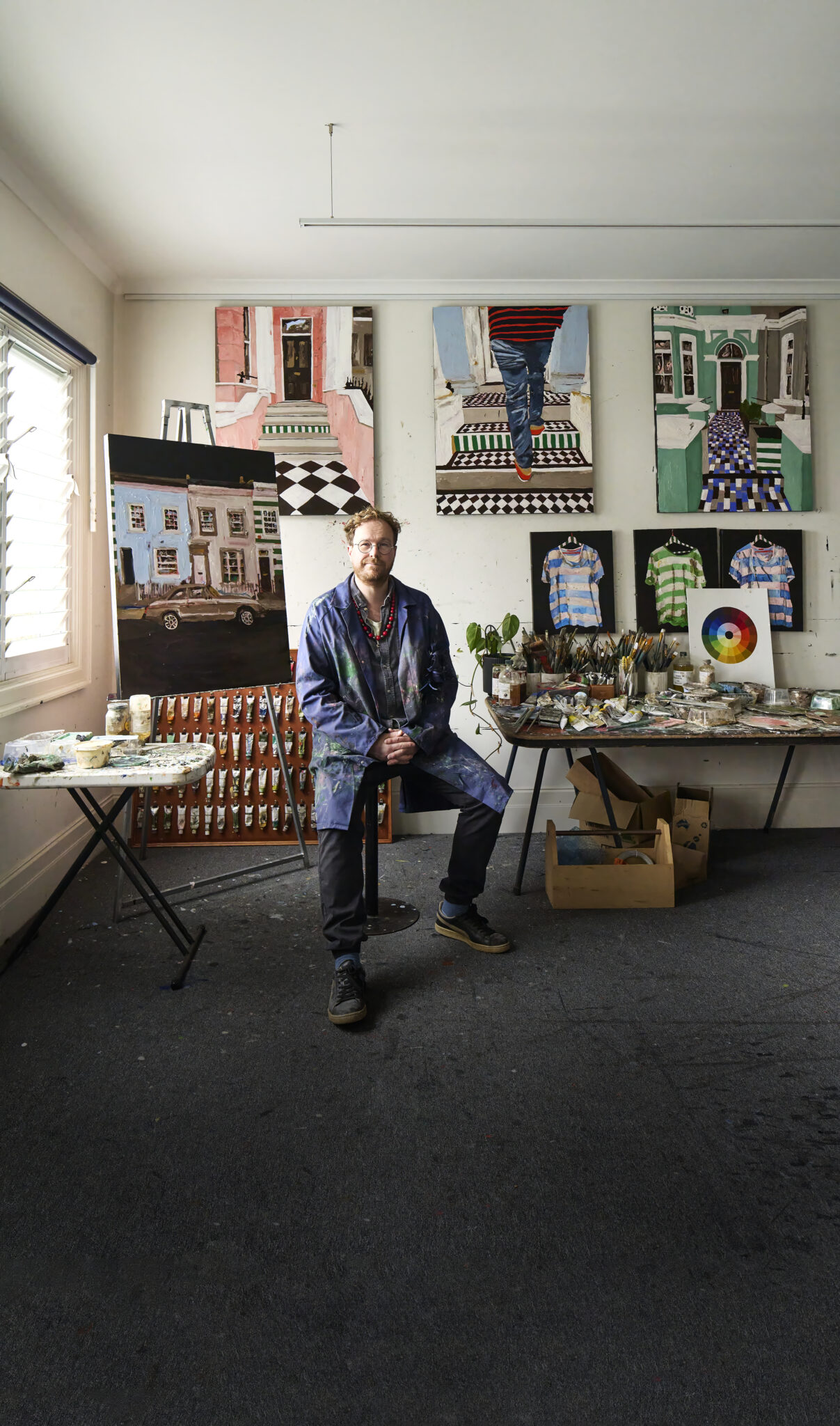 Brenton Drechsler (he/him) is an Australian emerging visual artist. He was born in Campbelltown, South Australia on Kaurna Country. Brenton studied at TAFE SA from 2006 to 2010 and completed an Advanced Diploma in Fashion Design and Technology. In his graduating year he won the 2010 TAFE SA Student of the Year award. Brenton was self-employed as a fashion designer until 2015. Brenton attained his Bachelor of Visual Art at Adelaide Central School of Art in 2022, winning the Hill Smith Art Advisory award for Painting and Drawing. Brenton went on to complete an Honour’s year of study in 2023, at Adelaide Central School of Art, achieving a First-Class Honours result. Brenton’s practice explores ideas around opacity, personal narrative, and orientation through the lens of his queer subjectivity. He also explores the absence of belonging to place through the materiality of paint.