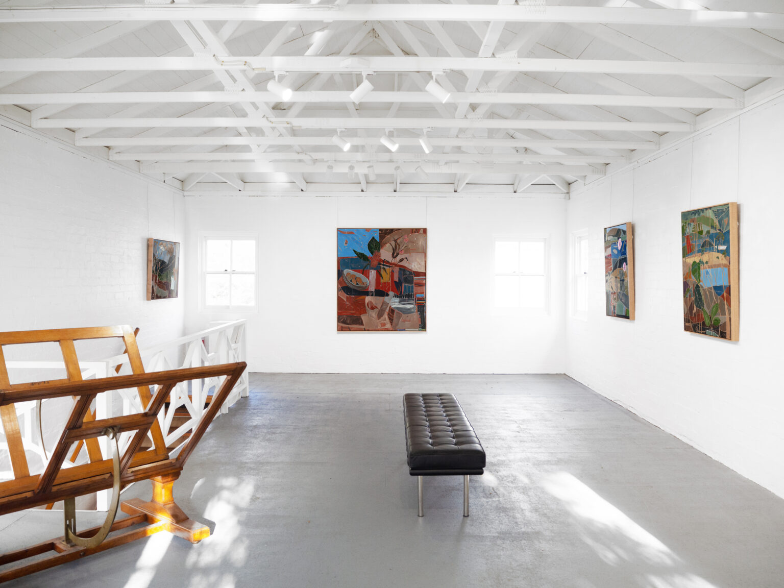 Drawing on a background in photo media and literature, Georgie Kite’s practice is grounded in observation and reflection. Her paintings develop gradually, layering colour, form, and texture to create surfaces where motifs such as vessels, headlands, and native flora seem to emerge and recede. These works are less representations of place than meditations on how place is perceived — how time, weather, light, and mood shift the way we see and understand the world around us.