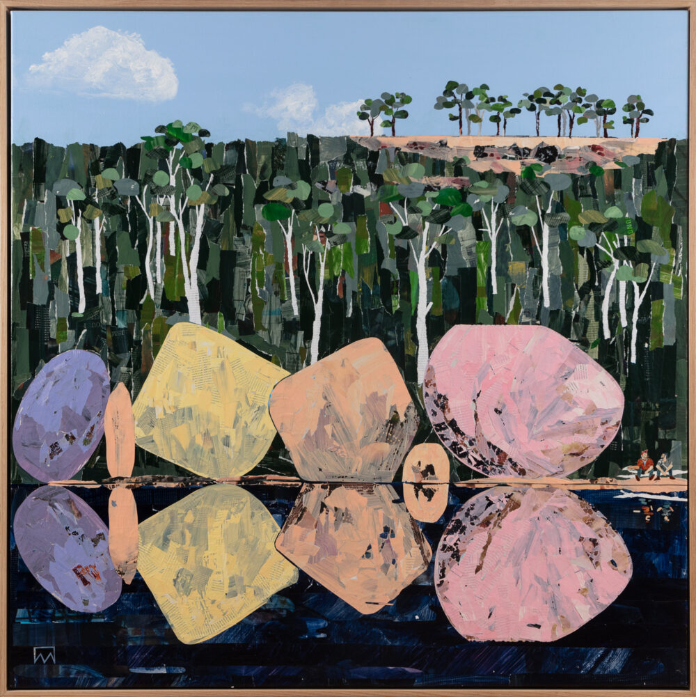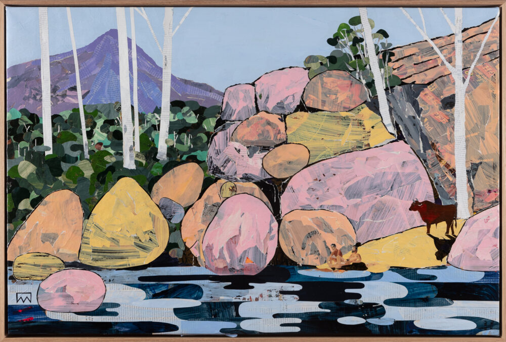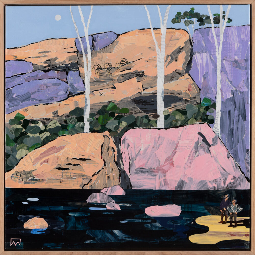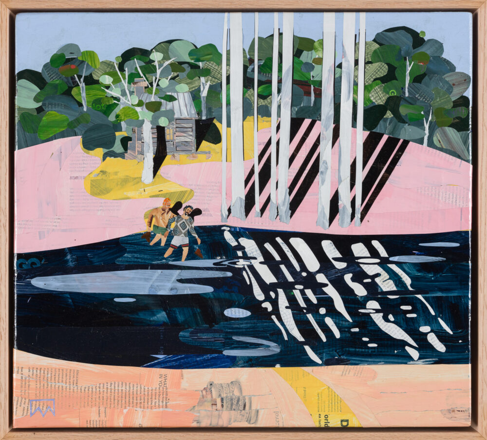 In August this year, Ray Monde completed an artist’s residency at Bundanon, the Illaroo NSW property that was once home to Arthur Boyd. His new collection of ghostworked collages on canvas that make up THE RIVER BETWEEN US was created during this time.