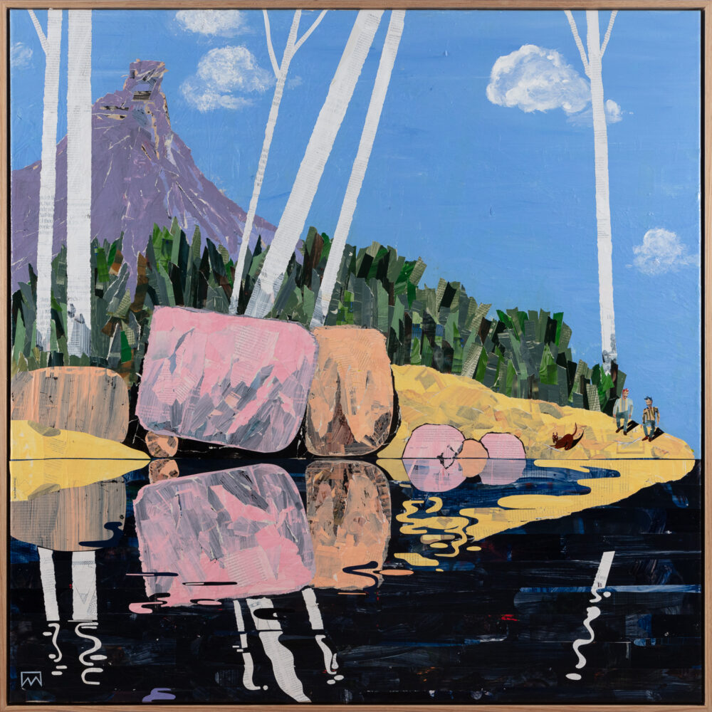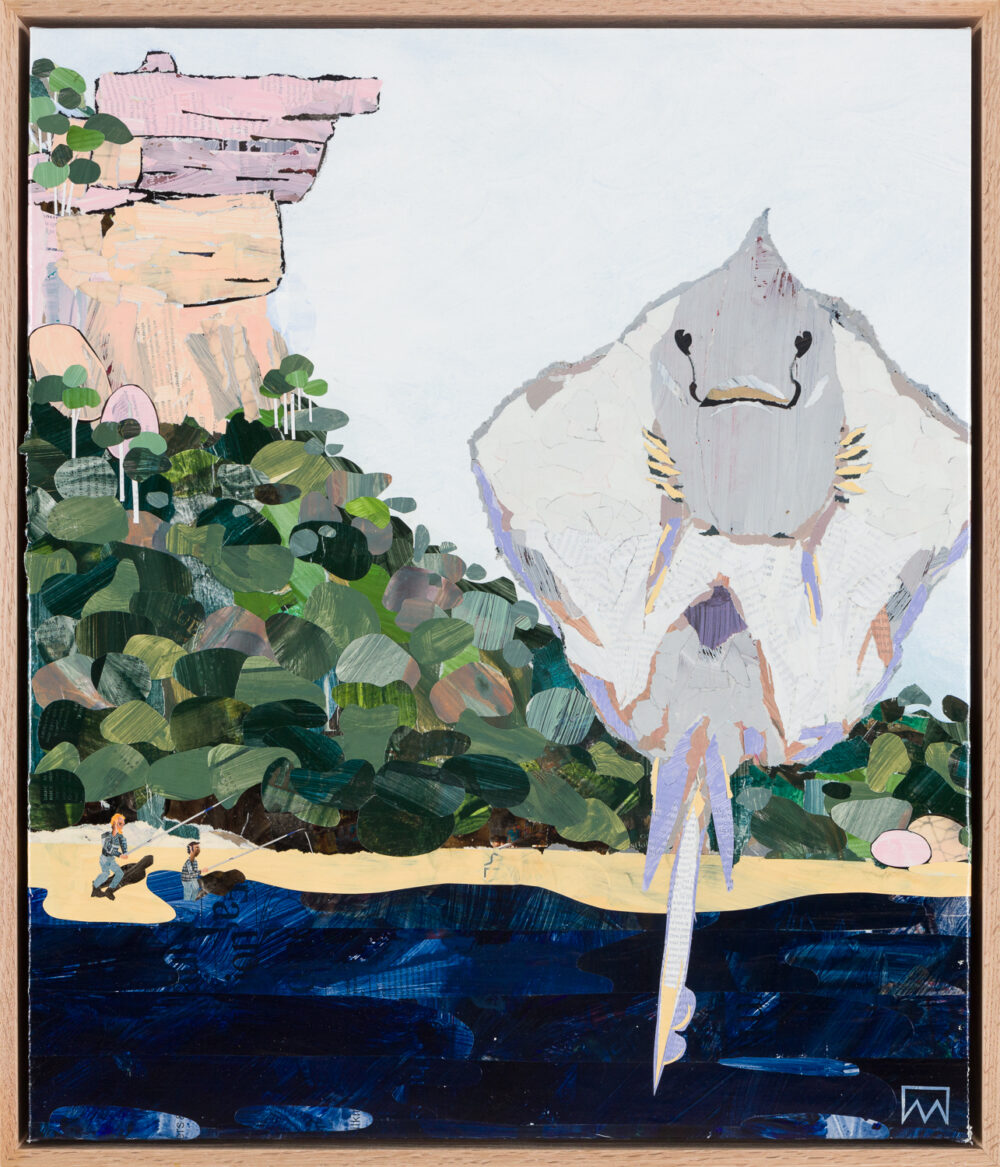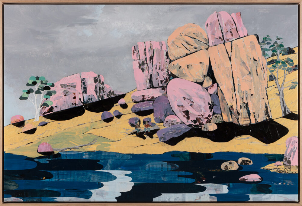 In August this year, Ray Monde completed an artist’s residency at Bundanon, the Illaroo NSW property that was once home to Arthur Boyd. His new collection of ghostworked collages on canvas that make up THE RIVER BETWEEN US was created during this time.