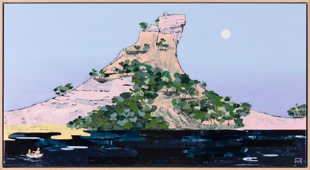 In August this year, Ray Monde completed an artist’s residency at Bundanon, the Illaroo NSW property that was once home to Arthur Boyd. His new collection of ghostworked collages on canvas that make up THE RIVER BETWEEN US was created during this time.