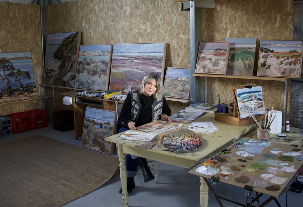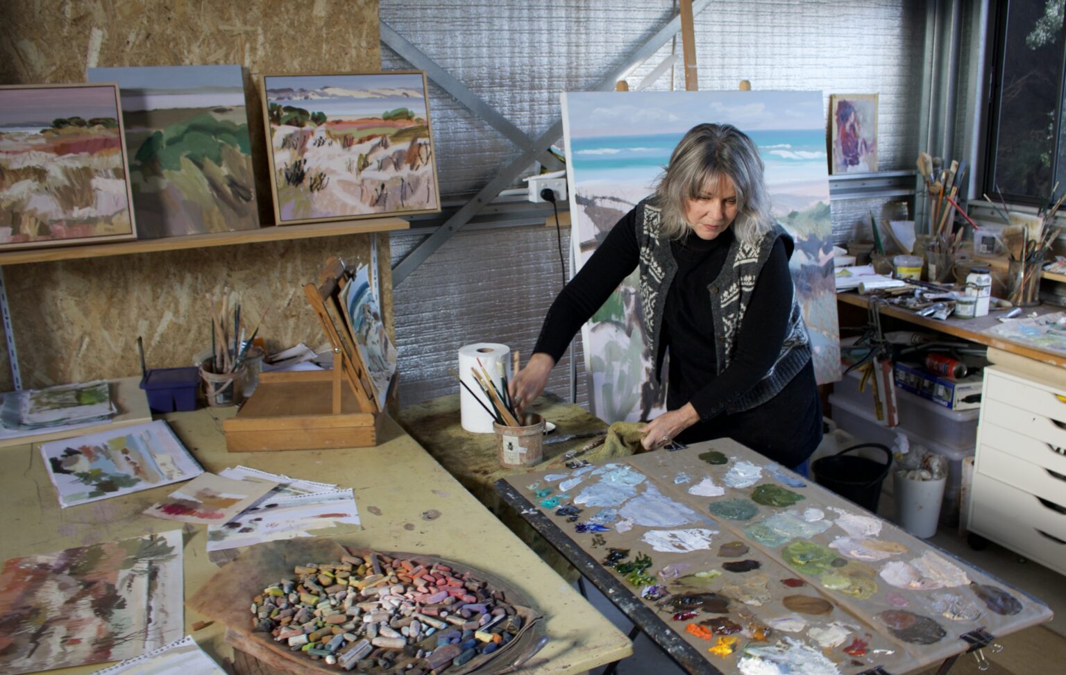 “I think the Australian landscape is a curious mix of being wildly beautiful and compelling, but simultaneously harsh and repelling. I can only speak of the area that I know well, on a peninsular surrounded by sea, the light is luminous and the colours have a soft smokiness shot with vibrant intensity that I find both calming and stimulating.”