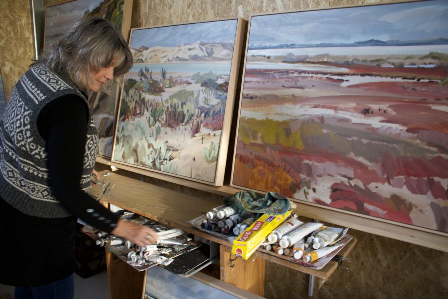 “Then I take these back to the studio and use them as seeds. I’m never concerned with making a good painting outside (though sometimes I do), but rather capturing what it was that drew me to the scene: a colour, a line, a wave, or cloud. Usually I play with various compositions in pastel to explore colour or tonal strength before committing to paint. These sketches give me an entry to the work, but very soon paint takes over and I’m lost in responding to its demands.”
