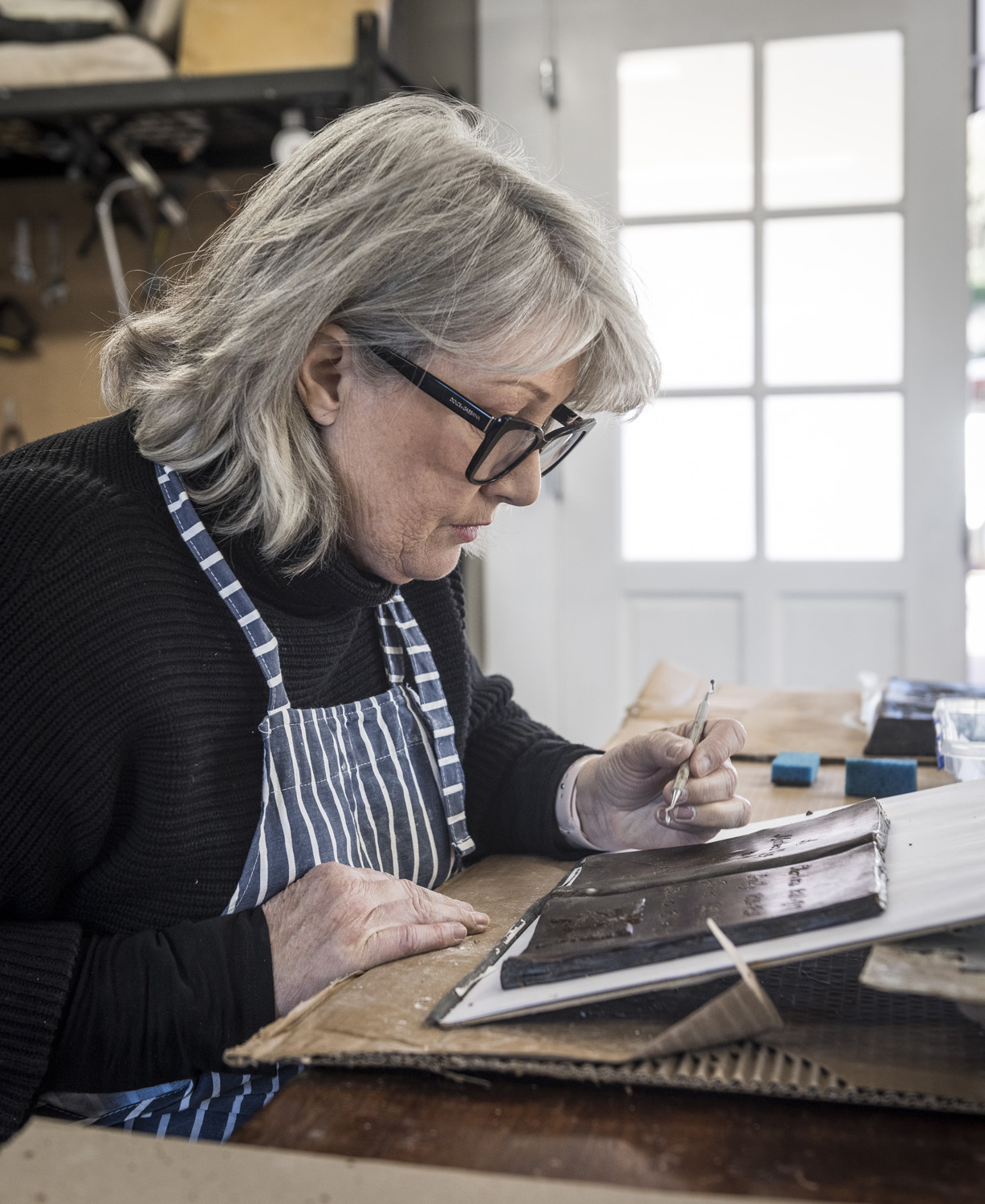 “I am really focused when I’m in the studio,” she admits. “I literally fall into a trance. I have to set an alarm because otherwise I forget to pick up the kids from school.”
