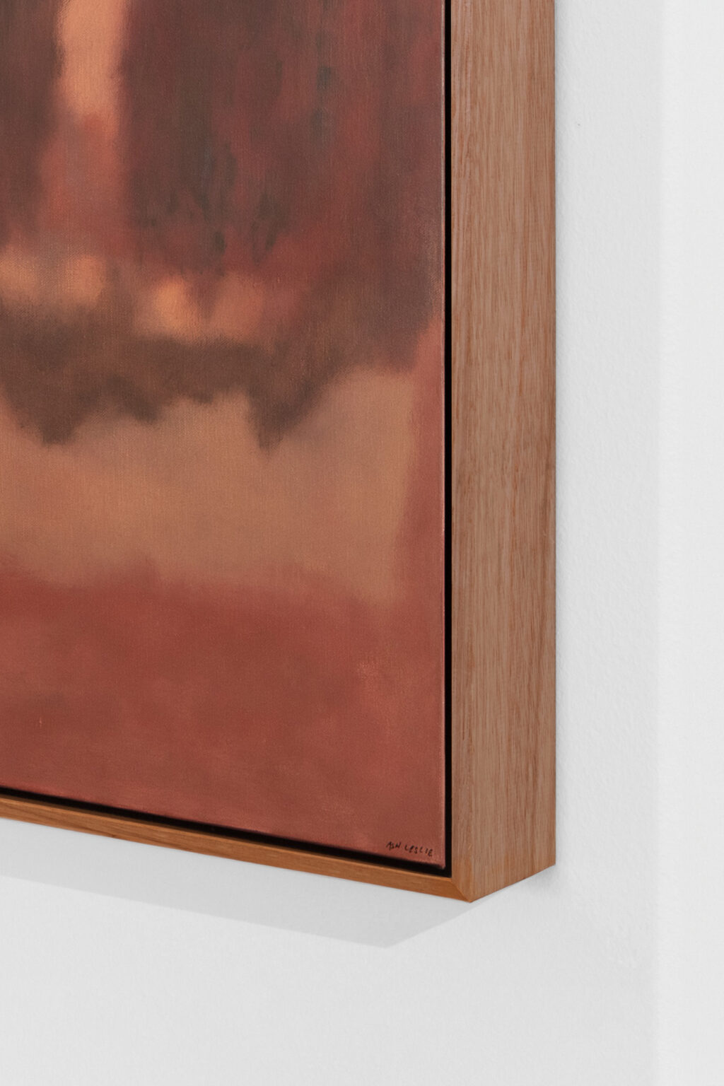 Ash Leslie’s open-ended process embraces chance and discovery. Layers of oil paint coalesce into forms that hover on the edge of recognition, drifting through diaphanous washes of grey, moss, and blush.