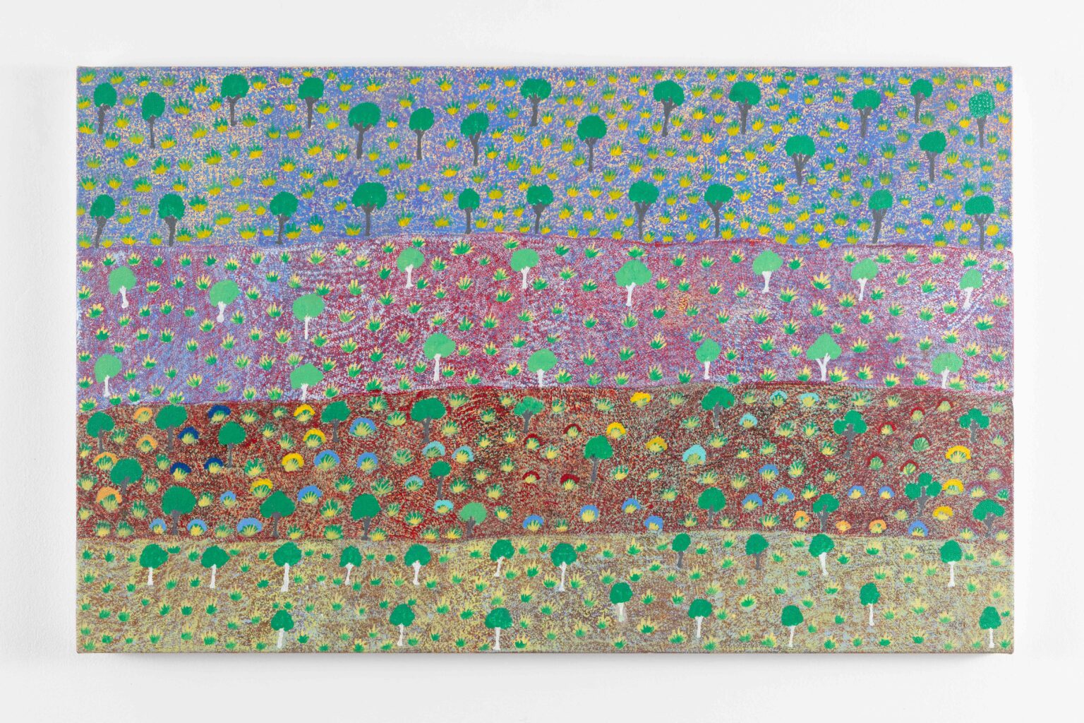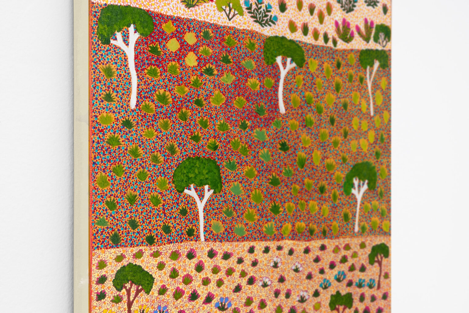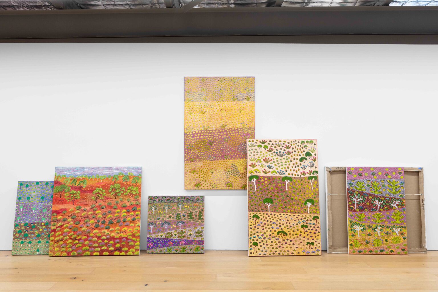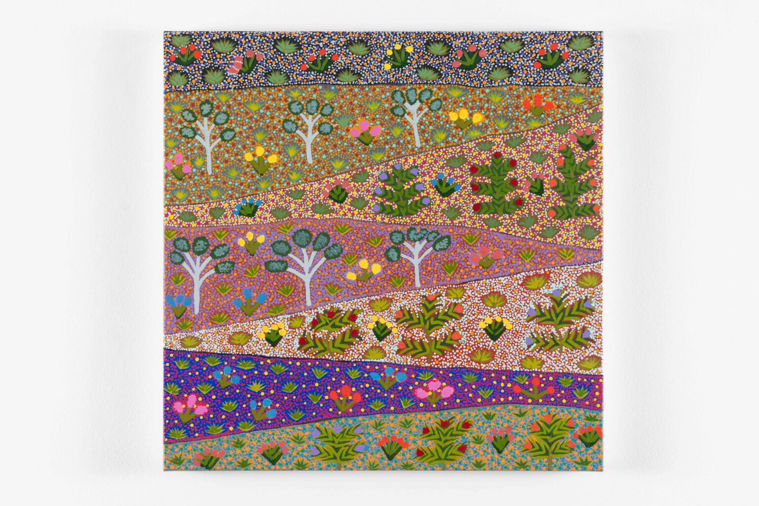 From the earliest days of our exhibition program, the Artists of Ampilatwatja have held a vital place at Michael Reid Southern Highlands. Working from their community on Alyawarr Country, approximately 320 kilometres north-east of Mparntwe (Alice Springs), these artists produce intricately layered paintings grounded in deep knowledge of land, culture and continuity. Their works map waterholes, bush medicines, desert flora and ancestral pathways through luminous fields of colour, and are held in major collections including the National Gallery of Australia and the Holmes à Court Collection.