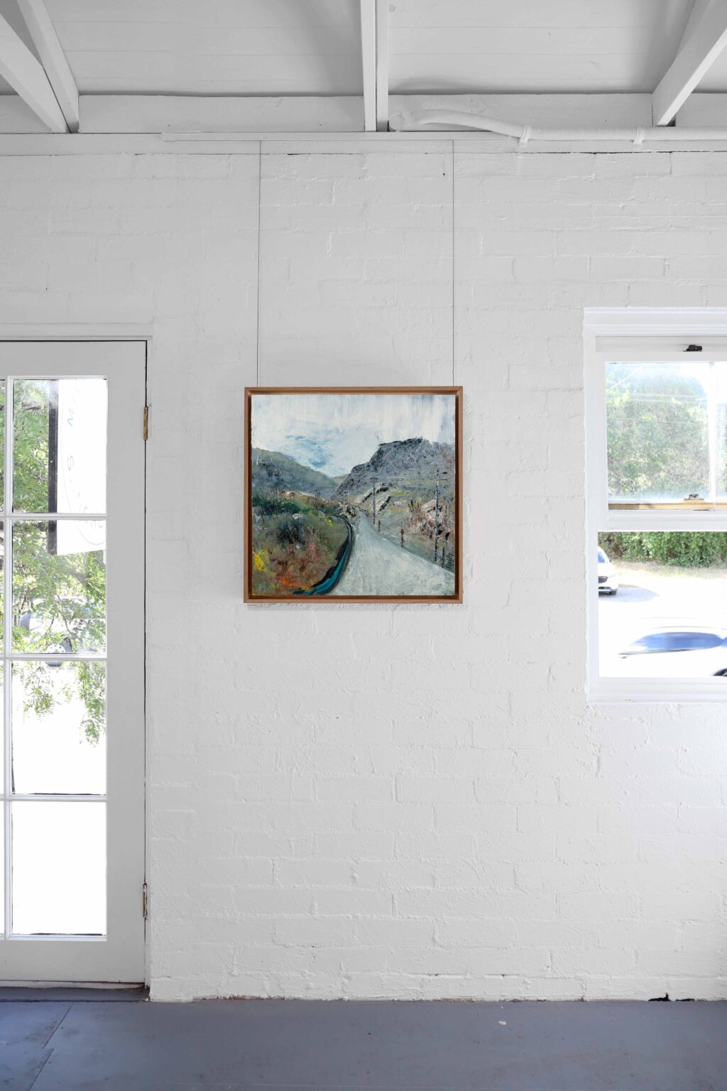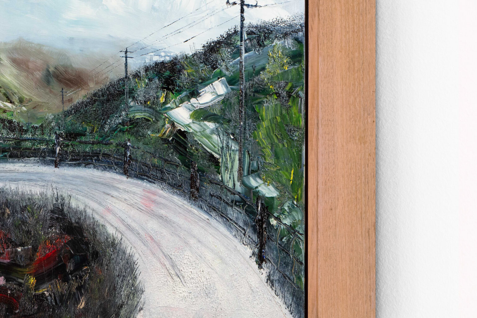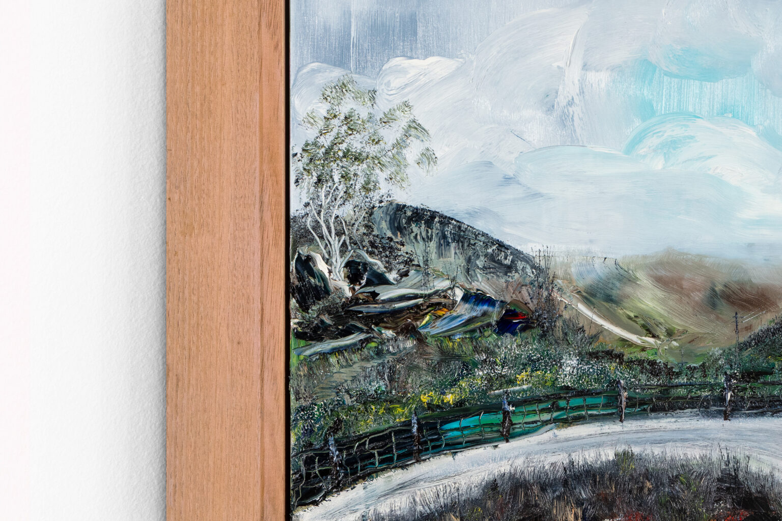 Working in a bold, expressive impasto, David King charts roads, ridgelines and shifting weather with an almost operatic instinct for drama: sky pressing low over the hills, light pooling in unexpected places, fences and telegraph lines drawing the eye forward. The scenes he paints travel widely — the Illawarra escarpment, the Central Tablelands, the edges of Goulburn, Orford’s pale fields, the misted greens of Ireland — but his subject is not geography. “I see the same things everywhere,” he says. “Ireland, Tasmania, the Tablelands — fences, gates, telegraph poles. They join all these places.”