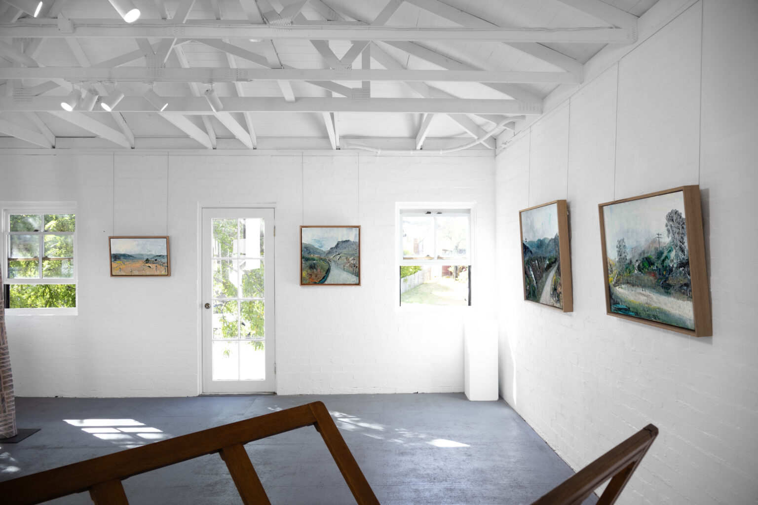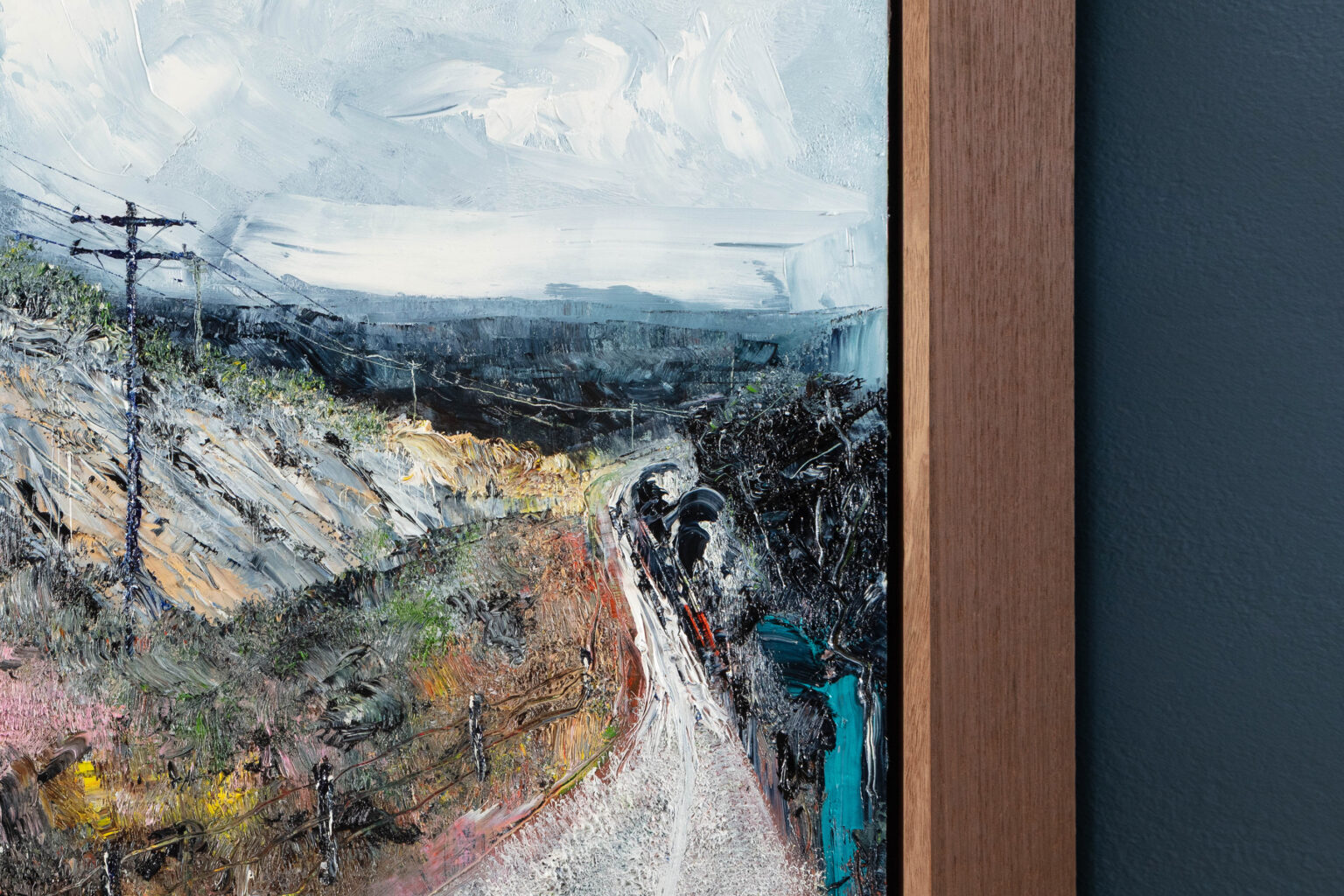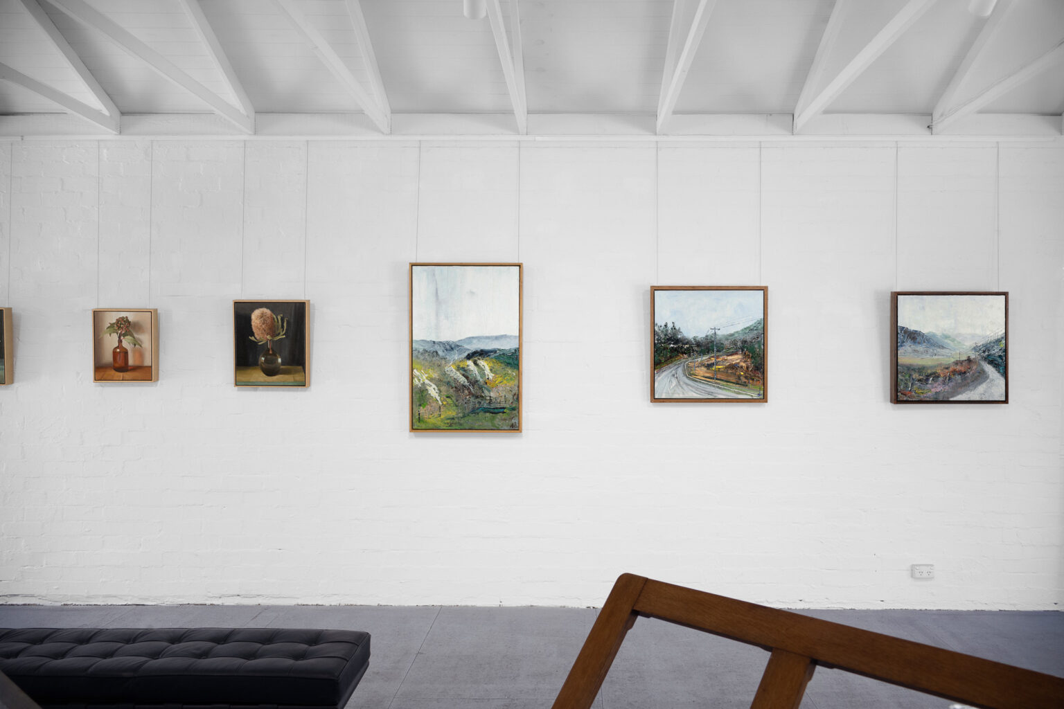 Working in a bold, expressive impasto, David King charts roads, ridgelines and shifting weather with an almost operatic instinct for drama: sky pressing low over the hills, light pooling in unexpected places, fences and telegraph lines drawing the eye forward. The scenes he paints travel widely — the Illawarra escarpment, the Central Tablelands, the edges of Goulburn, Orford’s pale fields, the misted greens of Ireland — but his subject is not geography. “I see the same things everywhere,” he says. “Ireland, Tasmania, the Tablelands — fences, gates, telegraph poles. They join all these places.”