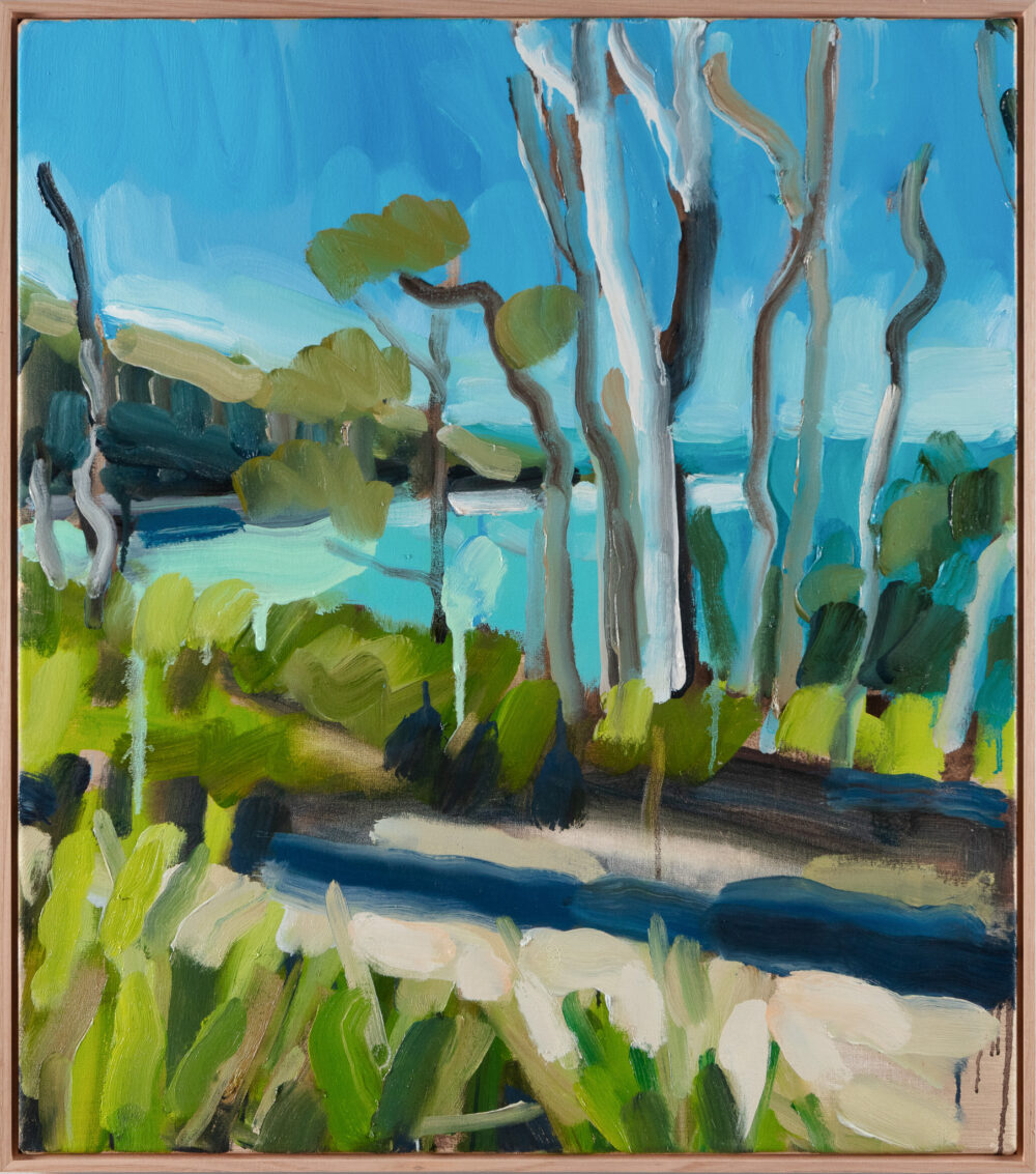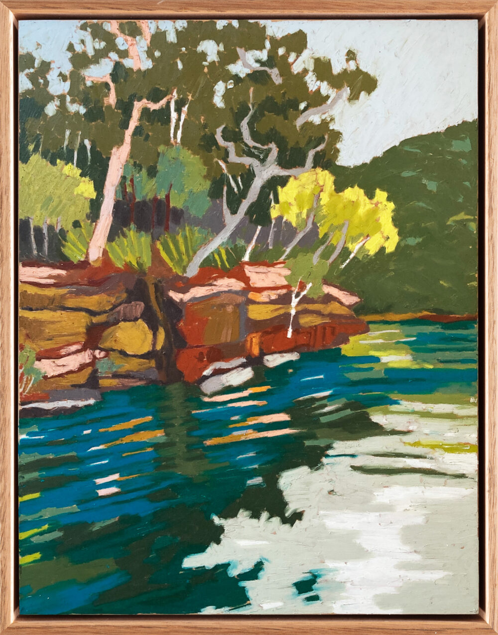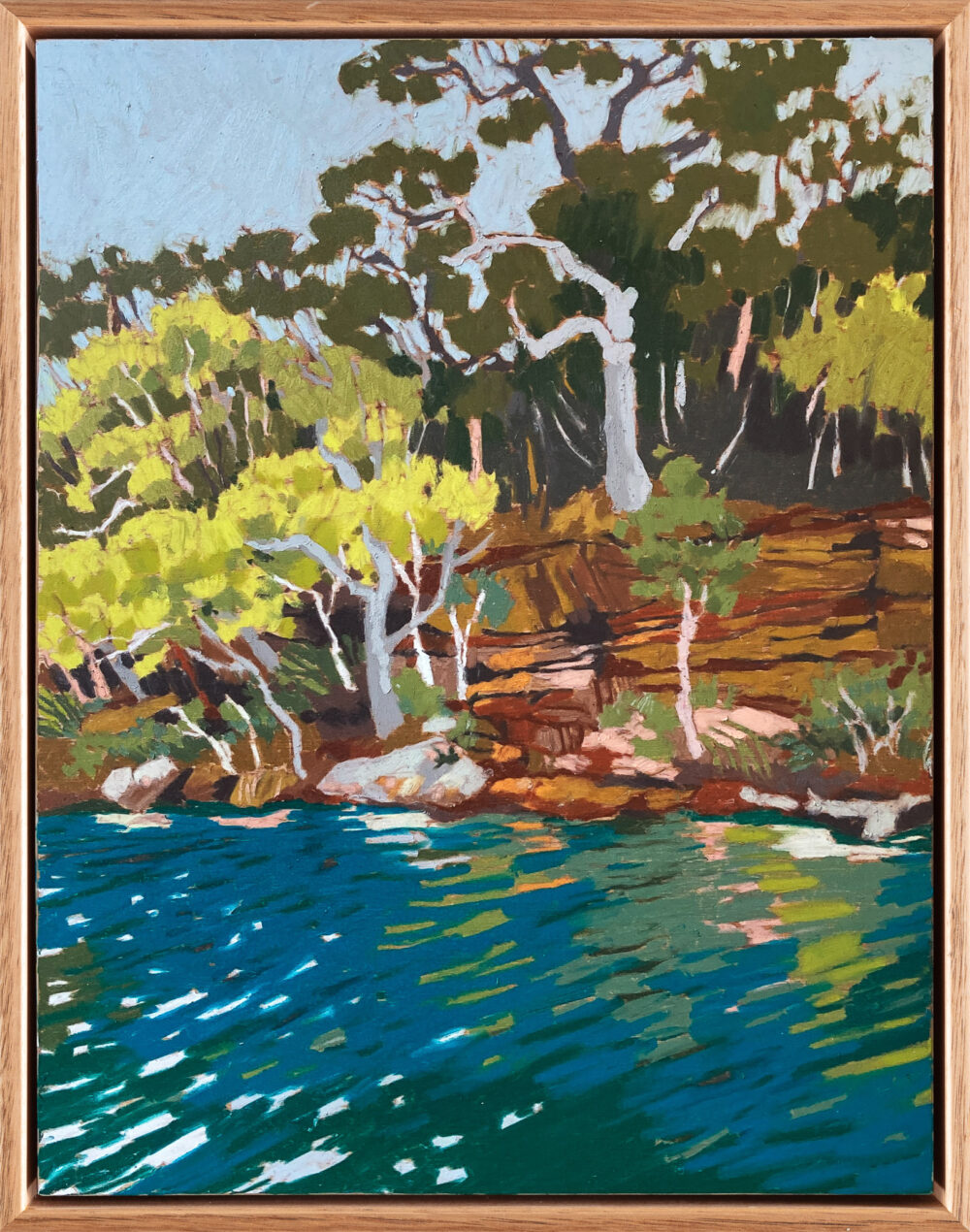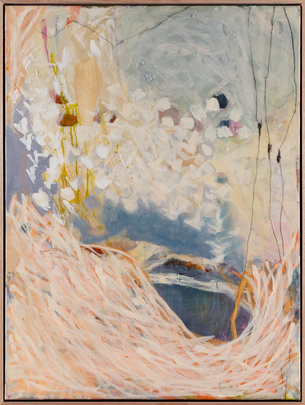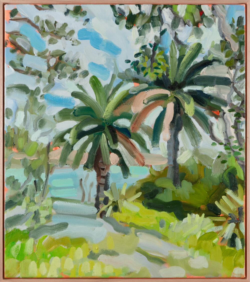 Each artist, with her distinct visual language, paints a single Tjukurpa – a cultural story rooted in her Country. Barney captures the lush vibrancy of the Kapata (bush plum) plant; Cullinan evokes the waterholes, boulders and riverbeds once traversed with her family on long journeys across Country. Burton, painting her ancestral lands of Anamara Piti – the site of the Caterpillar Tjukurpa, near Irrunytju (Wingellina) – uses sweeping brushwork to map roads and waterholes in bold, fluid lines.