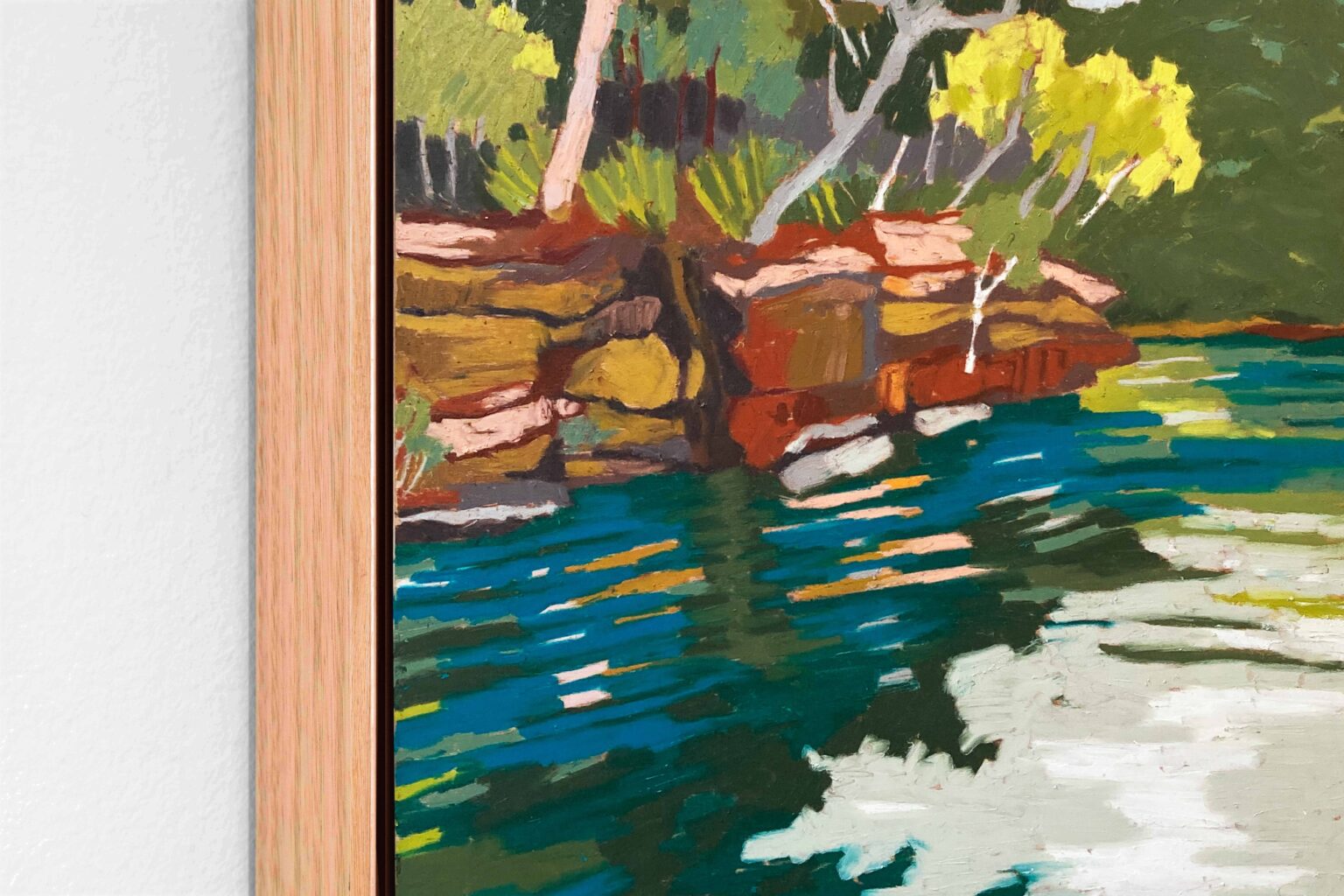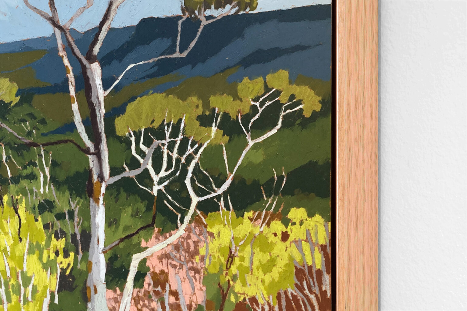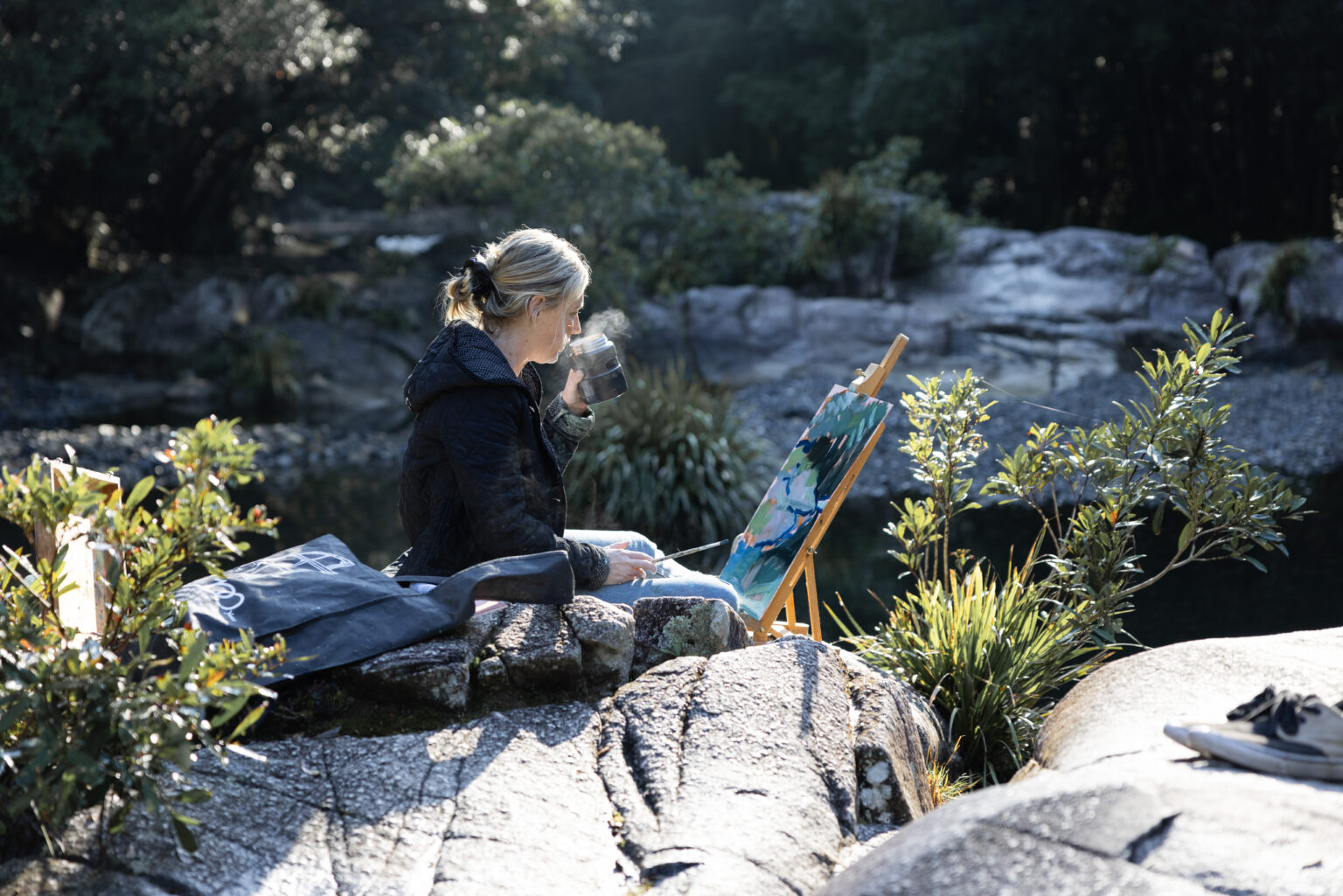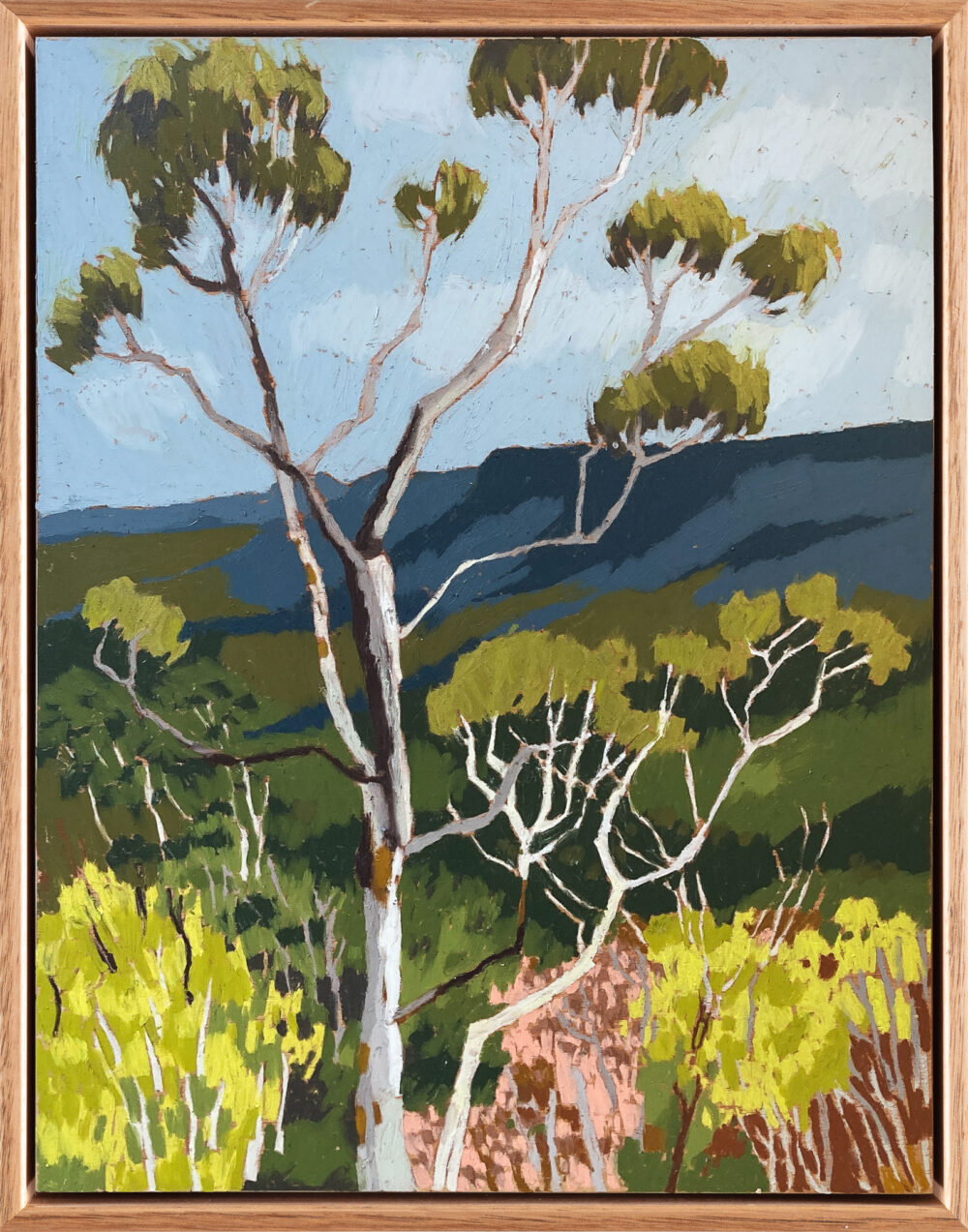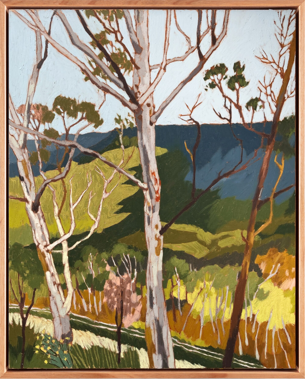 Each artist, with her distinct visual language, paints a single Tjukurpa – a cultural story rooted in her Country. Barney captures the lush vibrancy of the Kapata (bush plum) plant; Cullinan evokes the waterholes, boulders and riverbeds once traversed with her family on long journeys across Country. Burton, painting her ancestral lands of Anamara Piti – the site of the Caterpillar Tjukurpa, near Irrunytju (Wingellina) – uses sweeping brushwork to map roads and waterholes in bold, fluid lines.