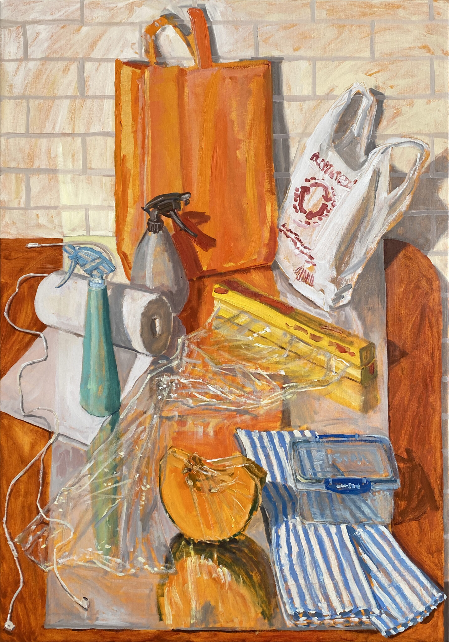 Where traditional vanitas paintings meditate on abundance as a symbol of decay and the passing of time, Strömland quietly inverts the form. Her profusions of fruit, vegetables and domestic objects signal not decline but imminent transformation — items destined to be chopped, sautéed, baked and shared.