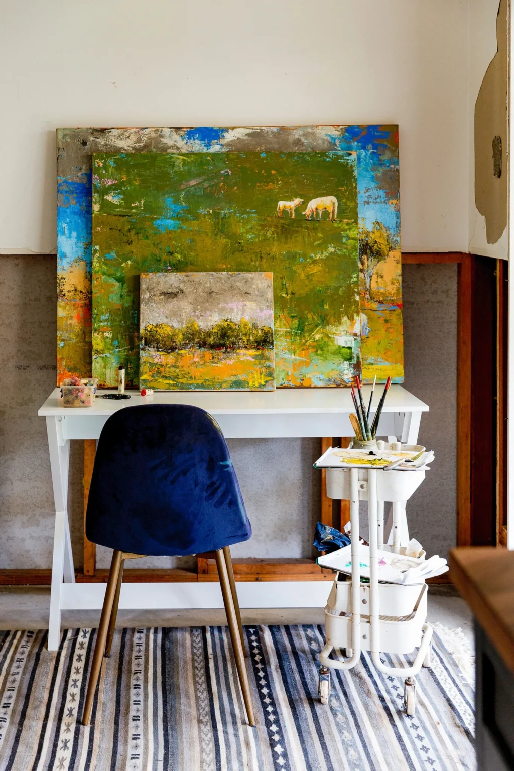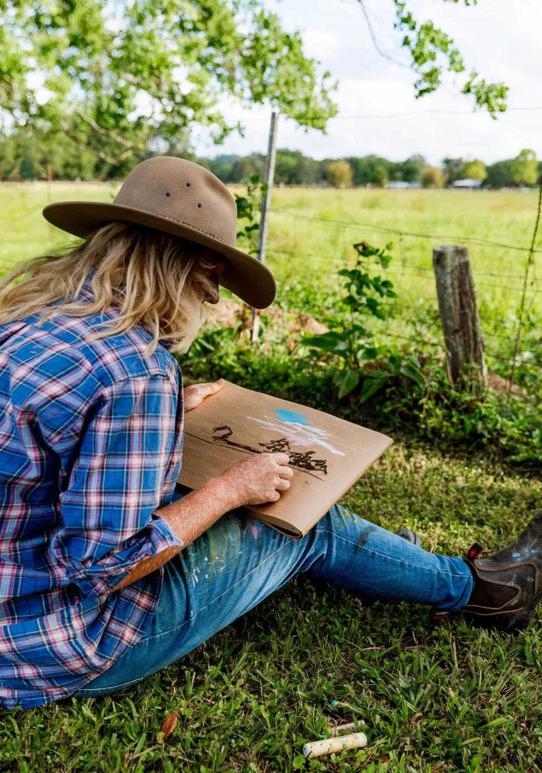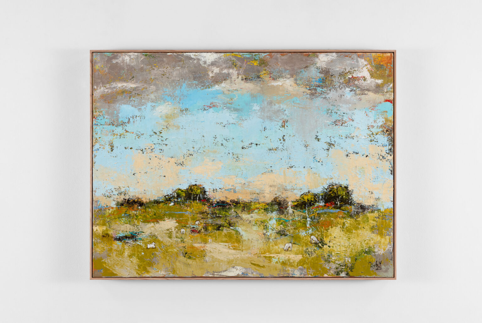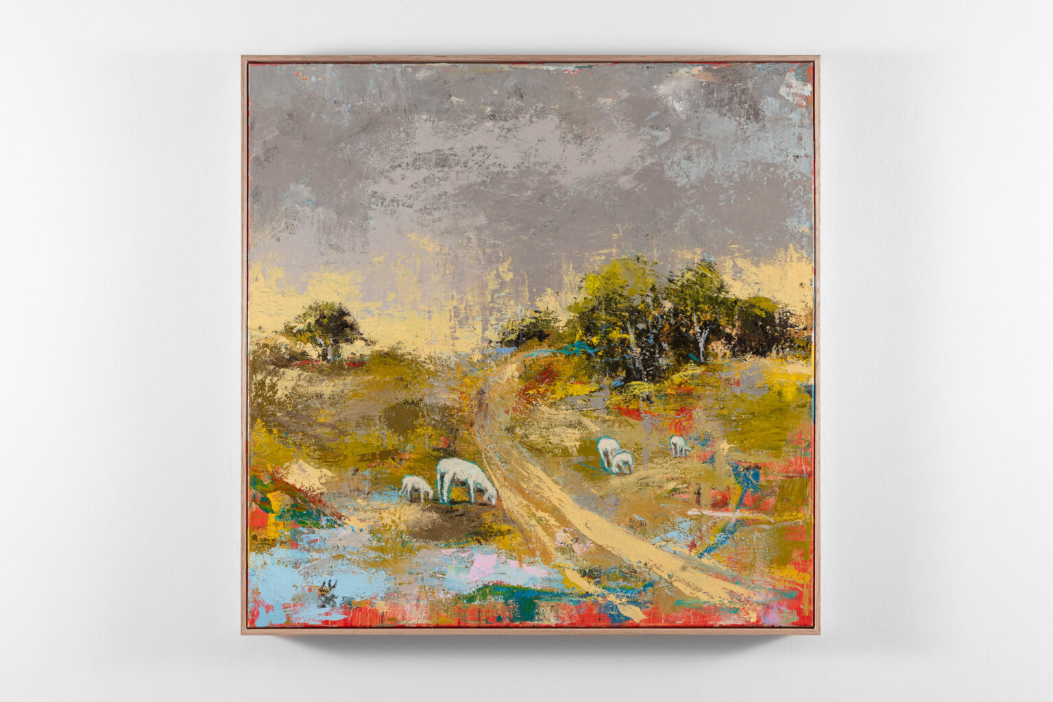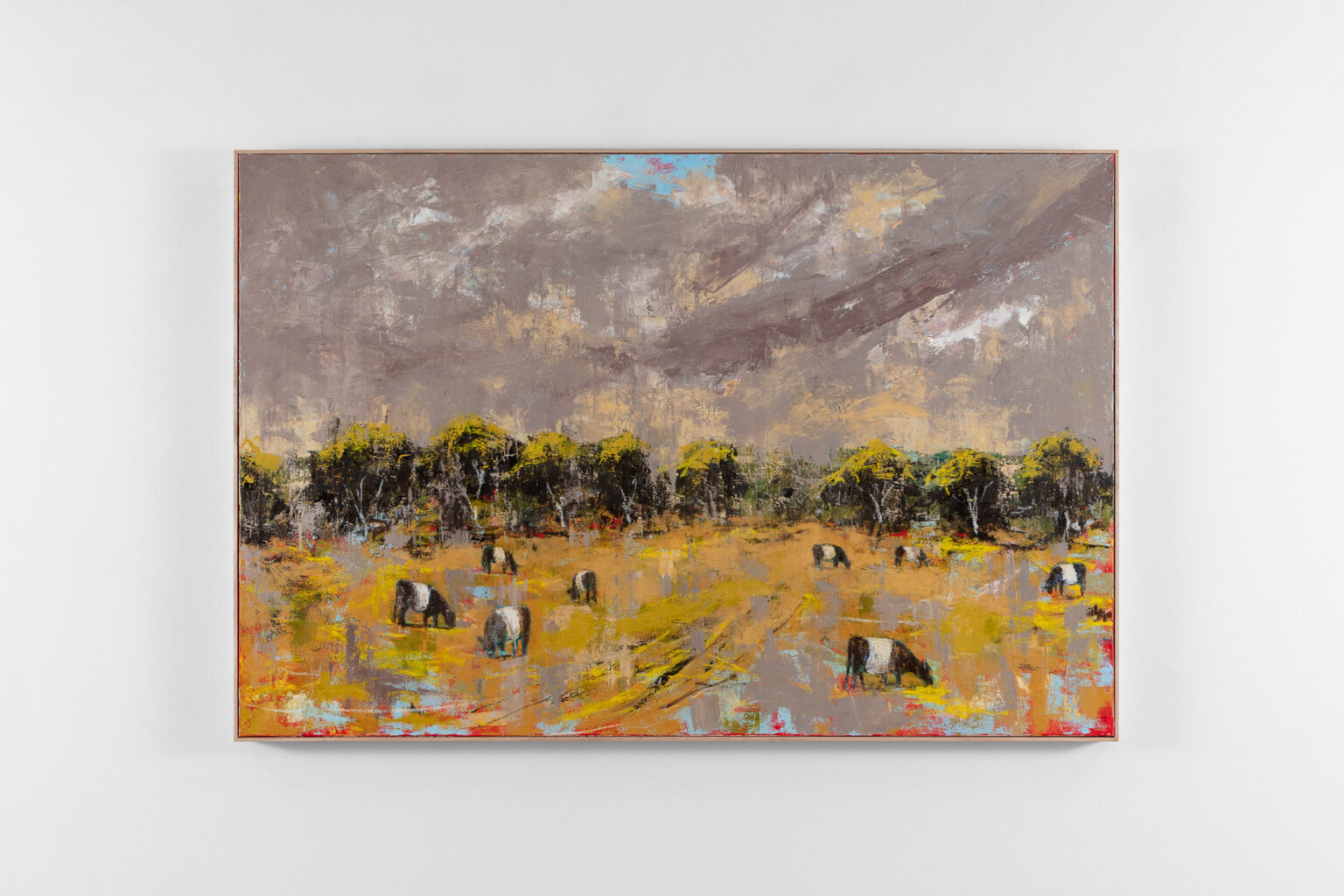 In this latest body of work, the Northern Rivers-based painter deepens her iconoclastic approach to the pastoral tradition. Weather Report gathers landscapes that seem to roil with shifting skies, rain-washed light, and sudden bursts of colour. Fields and paddocks stretch into distance, yet beneath their bucolic calm, Vader coaxes forth surges of painterly energy: skies dissolving into painterly abstraction, horizons blurred in atmospheric veils, unexpected eruptions of yellow, blue, and pink coursing through the scene like weather systems of their own.