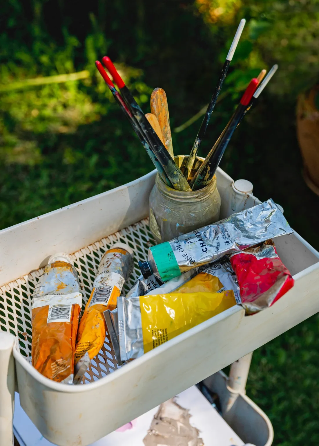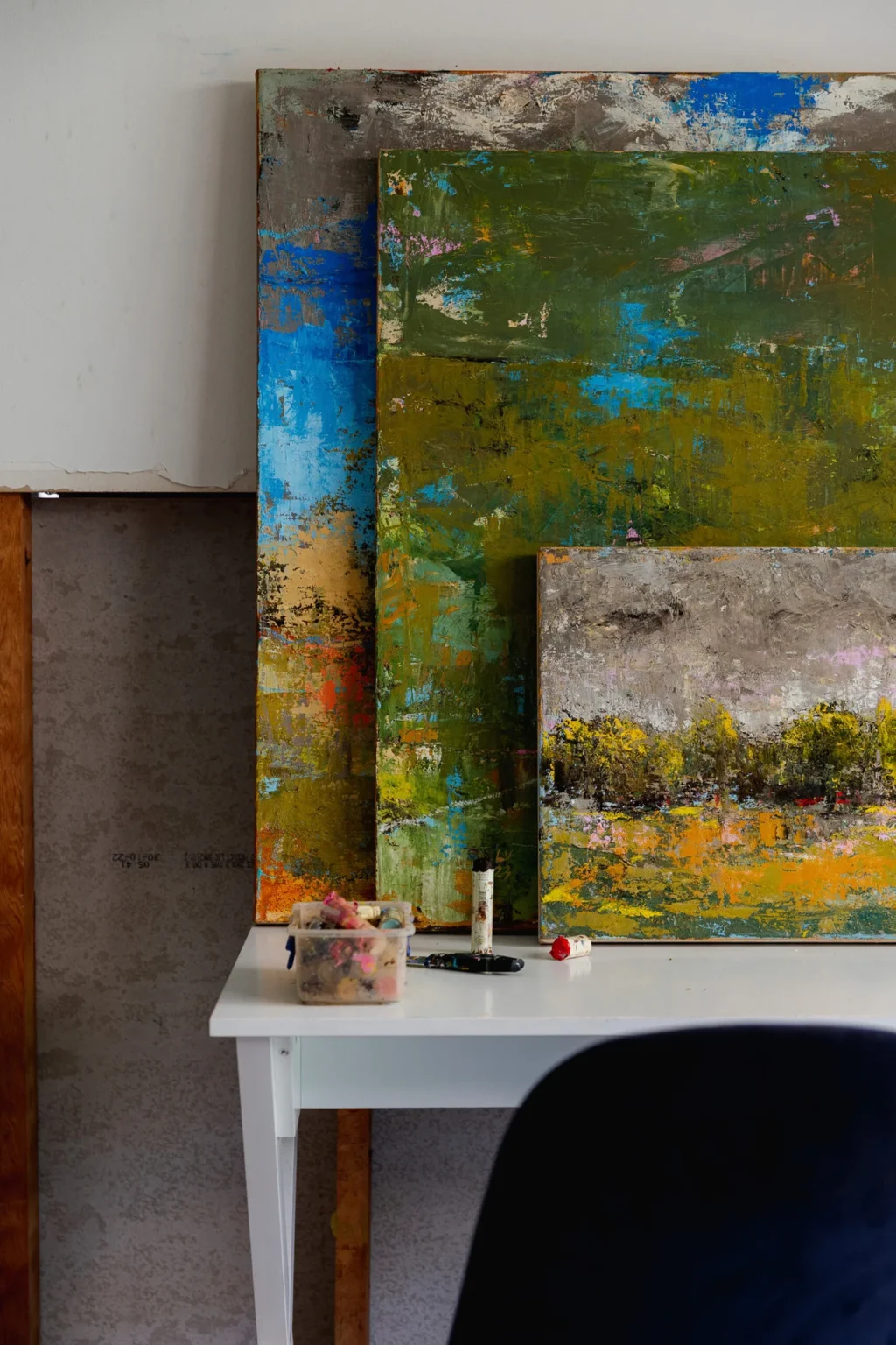 “It’s wild and abstract,” Vader explains of her process. “I upset myself and I upset the canvas … I bash things out and then I try and calm it all down again so it becomes a patina of painting moments.” This restless rhythm produces works that hover between figuration and abstraction, their surfaces alive with the turbulence of mark-making.