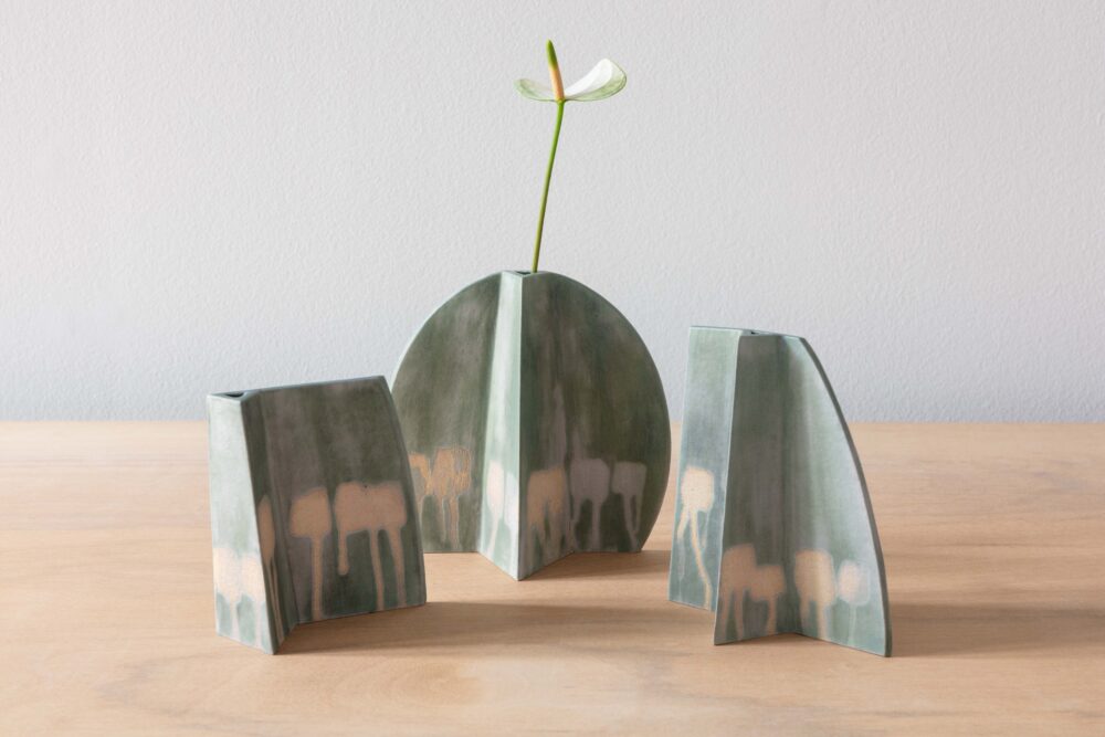 Ash Leslie’s open-ended process embraces chance and discovery. Layers of oil paint coalesce into forms that hover on the edge of recognition, drifting through diaphanous washes of grey, moss, and blush.