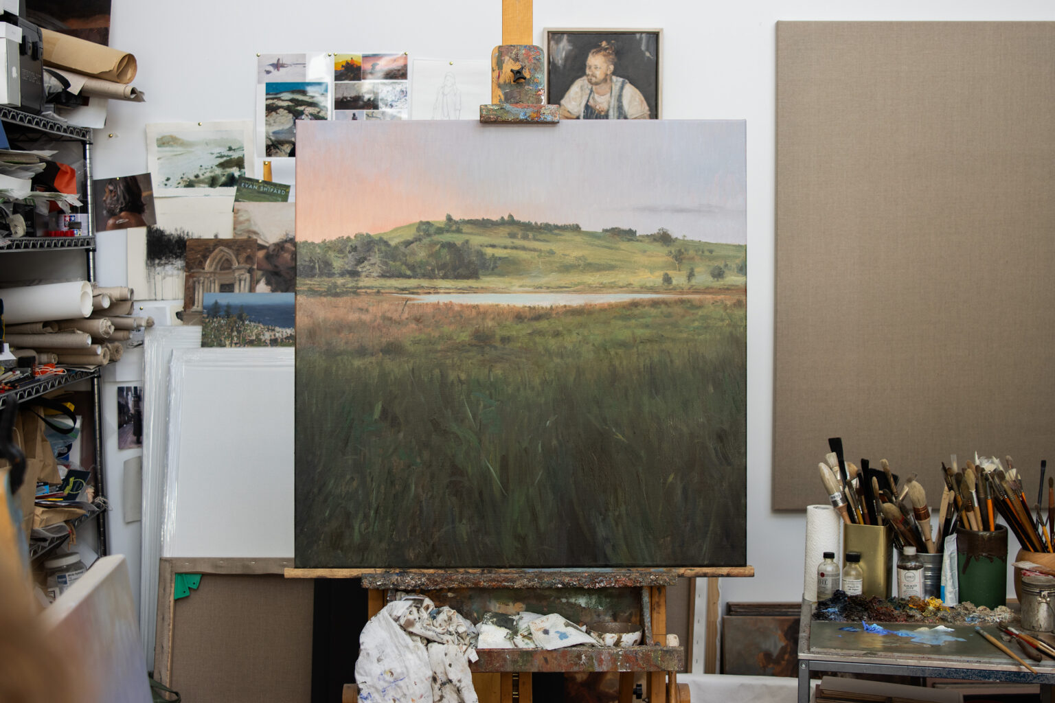 Evan Shipard is an Australian painter whose work is grounded in sustained observation of place. Working en plein air, he returns repeatedly to the Southern Highlands — to the Wingecarribee River at first light, to mist-held paddocks and stands of trees rising through morning fog — tracing the subtle shifts of light and atmosphere that define the region.