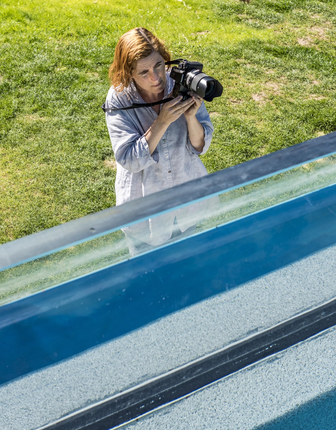 What Tamara built, working closely with Travis Lamb of Lambuild, is an off-form concrete underwater studio that is 12 metres long, four metres wide and two metres at the deep end. The viewing window is three metres wide, one metre high and made of acrylic glass to achieve the best image clarity. It incorporates a Naked Pools freshwater system that uses copper and silver instead of harmful chemicals to filter and sanitise the water while preventing algae growth. It’s the same technology used by NASA to purify drinking water. There is a heating system that warms the water to make it more comfortable during longer shoots – an important consideration in a Cambewarra winter.
