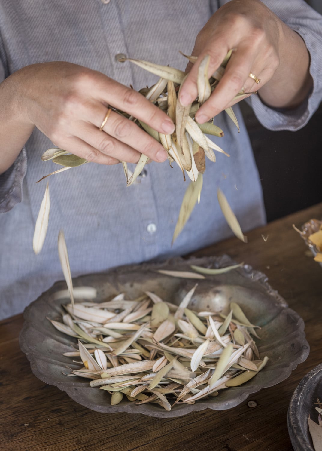 Dean decided to grow a number of plants used in her previous work on her property, including the Elephant’s Ear that featured in the 2018 In Our Nature series. This means she can now collect a range of botanicals from her backyard and use them in her new studio. And this has led to some wonderful discoveries.