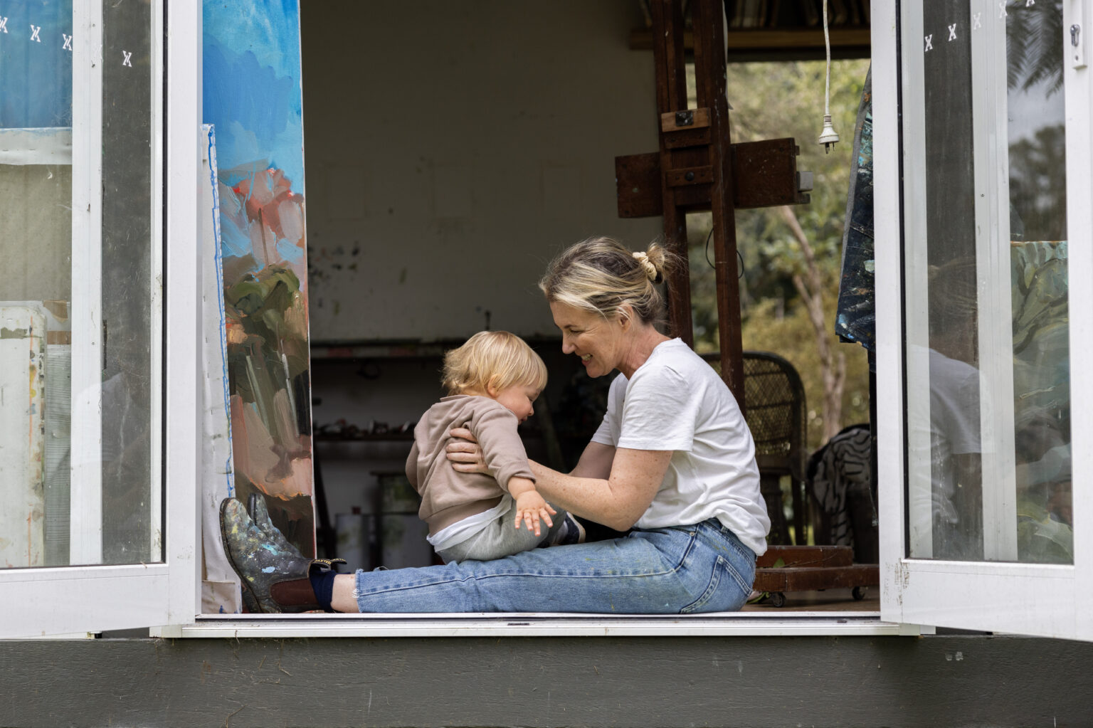 “It has changed my practice so much. I can’t believe I had all the time in the world before he came along and now I have to really hone in on the time I have. It makes me more efficient with my time in the studio. It’s a juggling act and my husband, Dan, has been amazing. When he finishes work at 5 o’clock, I hand Phoenix over and work in my studio until late. And I’ll often get up early and work before Dan starts at nine. I also do a lot of work in the studio on weekends.”