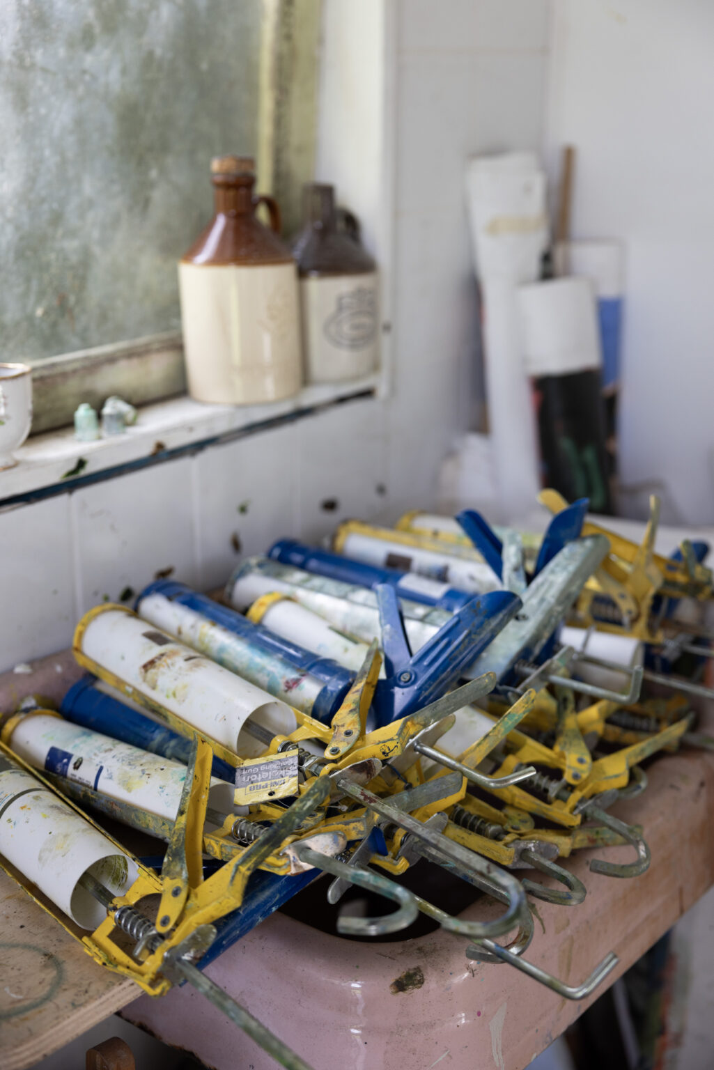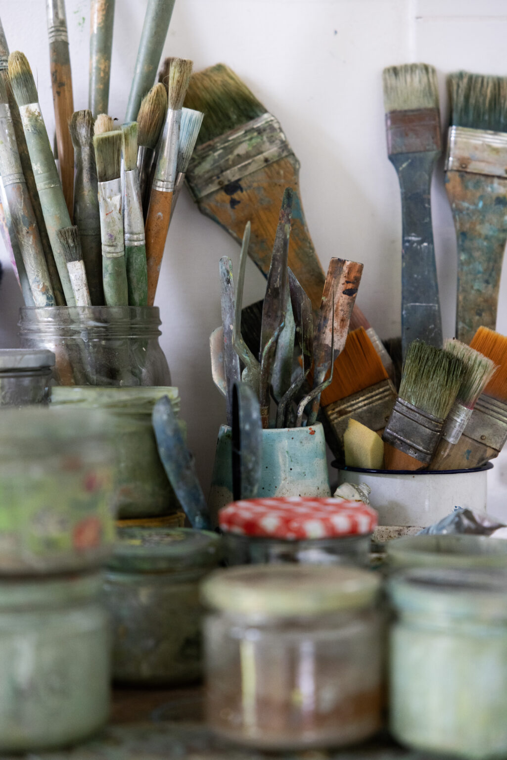 “My husband can work remotely so we moved back to the house and property I grew up in. Dad liked tennis and he spent hours each week maintaining a grass tennis court. He also built a tennis shed to keep all the tennis equipment in and we turned that shed into my studio.”